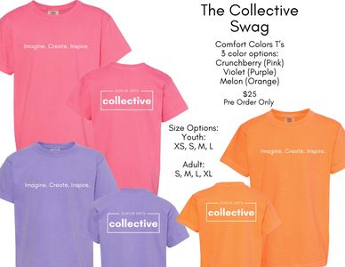 Sport your studio swag wherever you go in these comfy, Comfort Colors t's. Available in 3 color options; Crunchberry, Violet, and Melon - youth and adult sizes. Comfort Color t's are $25 each.